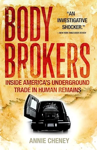 “You are a little soul carrying around a corpse.” —Epictetus “Wherever the corpse is, there the vultures will follow.” —Matthew 24:28 Body Brokers is an audacious, disturbing, and compellingly written investigative exposé of the lucrative business of procuring, buying, and selling human cadavers and body parts. Every year human corpses meant for anatomy classes, burial, or cremation find their way into the hands of a shadowy group of entrepreneurs who profit by buying and selling human remains. While the government has controls on organs and tissue meant for transplantation, these “body brokers” capitalize on the myriad other uses for dead bodies that receive no federal oversight whatsoever: commercial seminars to introduce new medical gadgetry; medical research studies and training courses; and U.S. Army land-mine explosion tests. A single corpse used for these purposes can generate up to $10,000. As journalist Annie Cheney found while reporting on this subject over the course of three years, when there’s that much money to be made with no federal regulation, there are all sorts of shady (and fascinating) characters who are willing to employ questionable practices—from deception and outright theft—to acquire, market and distribute human bodies and parts. In Michigan and New York she discovers funeral directors who buy corpses from medical schools and supply the parts to surgical equipment companies and associations of surgeons. In California, she meets a crematorium owner who sold the body parts of people he was supposed to cremate, generating hundreds of thousands of dollars in profits. In Florida, she attends a medical conference in a luxury hotel, where fresh torsos are delivered in Igloo coolers and displayed on gurneys in a room normally used for banquets. “That torso that you’re living in right now is just flesh and bones to me. To me, it’s a product,” says the New Jersey-based broker presiding over the torsos. Tracing the origins of body brokering from the “resurrectionists” of the nineteenth century to the entrepreneurs of today, Cheney chronicles how demand for cadavers has long driven unscrupulous funeral home, crematorium and medical school personnel to treat human bodies as commodities. Gripping, often chilling, and sure to cause a reexamination of the American way of death, Body Brokers is both a captivating work of first-person reportage and a surprising inside look at a little-known aspect of the “death care” world.